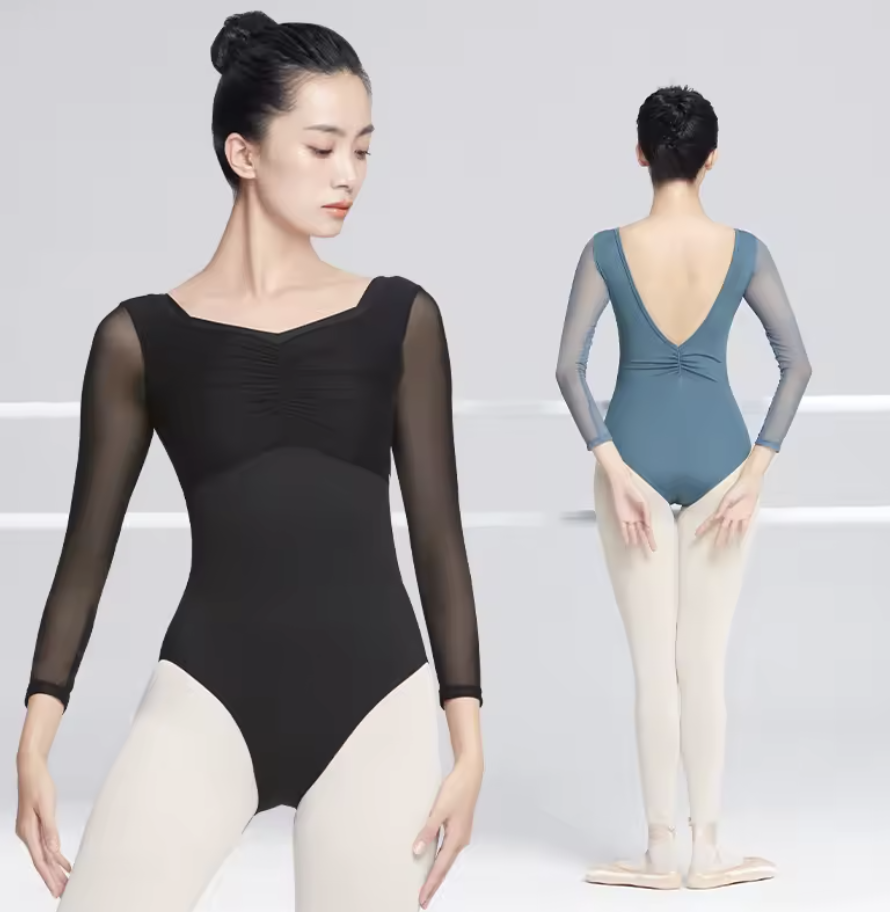 Product Name: Ballet Leotards for Women – Patchwork Mesh Long Sleeve Square Collar