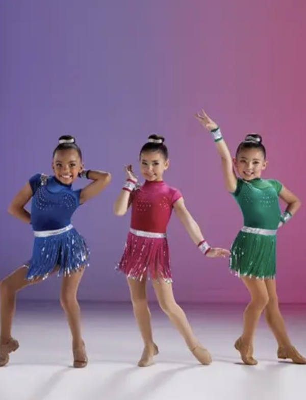 This elegant velvet dress is designed for standout stage presence, featuring a petite sequin waist overlay adorned with an array of premium crystals for brilliant sparkle. The asymmetric mesh neckline and back waist inset add a modern, dramatic touch.