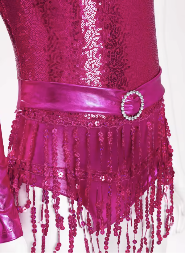 Kids Girls Sparkly Sequin Tassel Metallic Ballet Leotard – Latin & Jazz Dance Performance Bodysuit