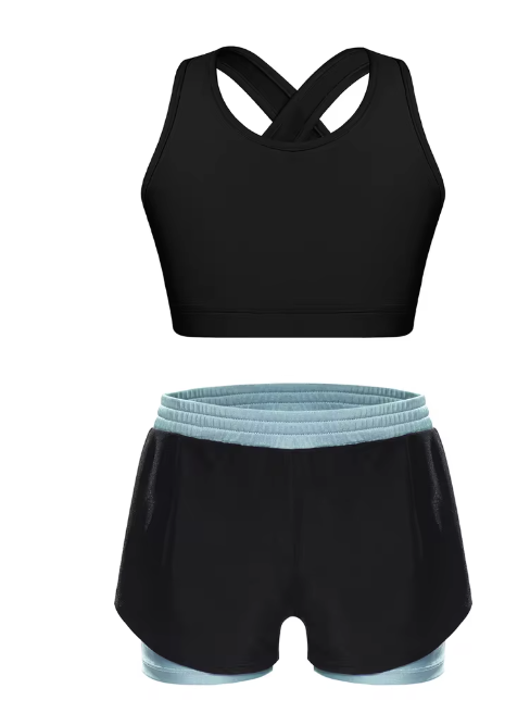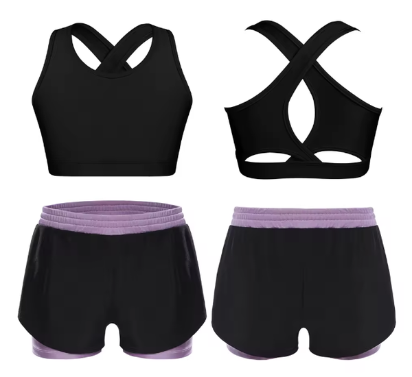 This activewear set combines style, comfort, and flexibility, perfect for energetic kids who love to move. The breathable, skin-friendly fabric keeps them cool while the cross-back crop vest and double-layer shorts allow for a full range of motion in every step, jump, and turn.