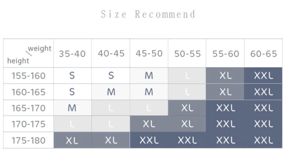 Sizes: S (155–160cm), M (160–165cm), L (165–170cm), XL (170–175cm), 2XL (170–180cm)