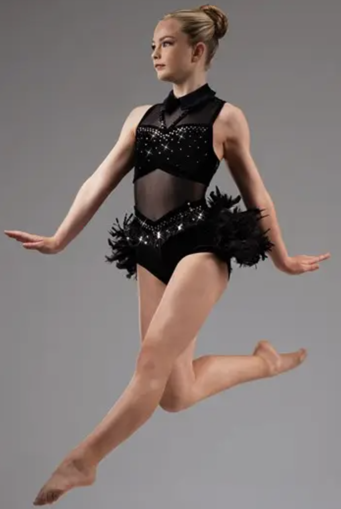 Turn heads with this show-stopping velvet leotard, designed exclusively for standout stage presence.