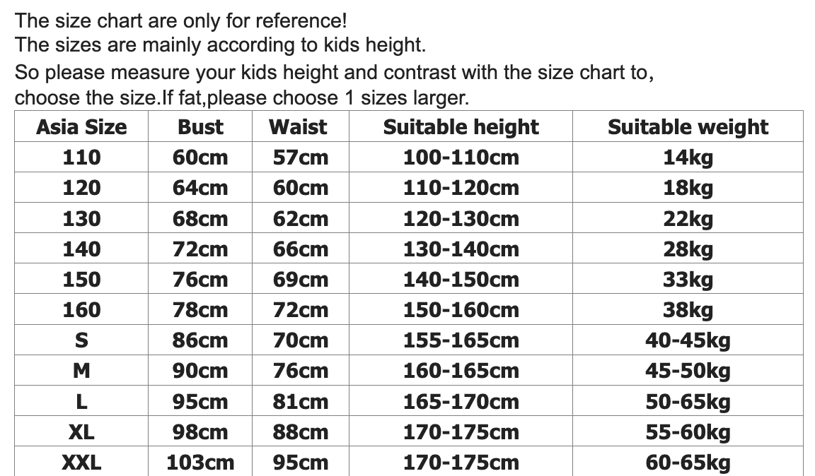 Note: Sizes are mainly based on children’s height and bust measurements. For the best fit, please measure your dancer carefully and refer to the size chart. If in between sizes, we recommend sizing up.