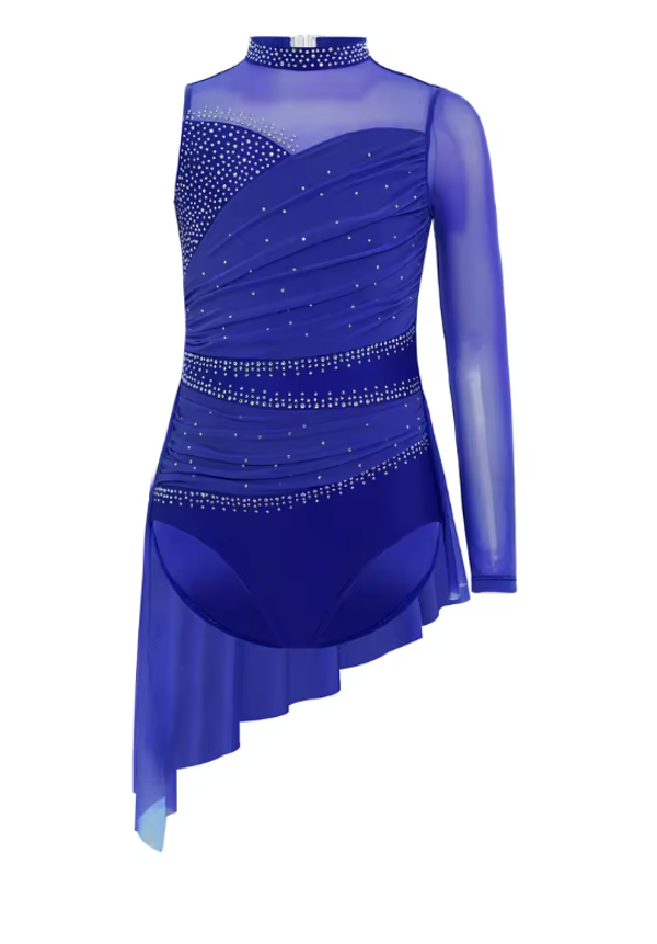 Girls Rhinestone Lyrical Dance Dress – Asymmetrical Skirt Design