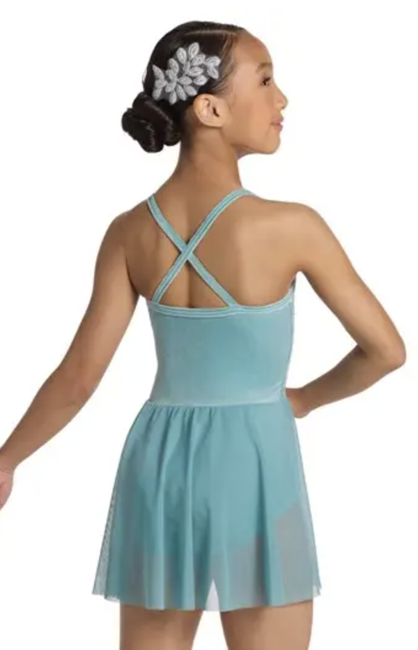Luxurious velvet leotard with elegant crisscross back straps for a secure, sculpted fit.