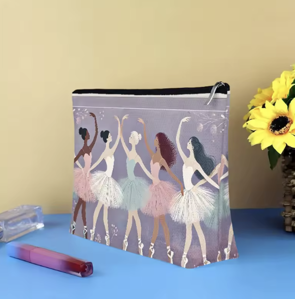 Adorned with a graceful ballet dancer motif, this pouch captures the elegance and strength of the stage while keeping your essentials perfectly organised.