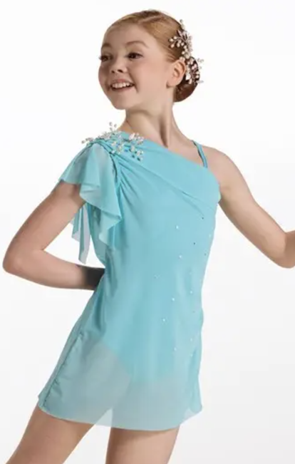 Bring elegance and sparkle to the stage with this beautifully crafted pale blue lyrical dance dress – designed to move as gracefully as you do.